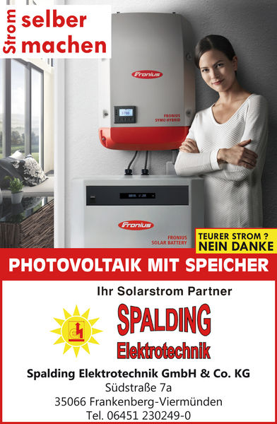 Die Firma Spalding Elektrotechnik gehört zu den führenden Anbietern im Bereich Photovoltaikanlagen in Waldeck-Frankenberg. Neben der aktuellen Speichertechnik bietet die Firma auch Brauchwasserwärmepumpen in Verbindung mit einer PV-Anlage an. Des Weiteren installiert die Firma Infrarotheizungen und hat sich auf Smart Home Technik von Loxone spezialisiert.